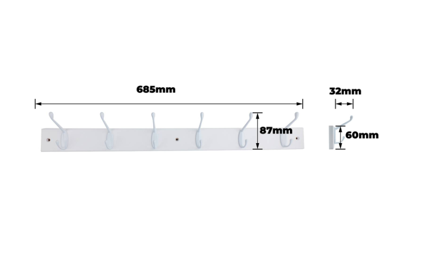 Slimline Hookrail - White w/ White Slim 6 FSC100% is a sleek, modern storage solution ideal for efficiently organising tools and household items. Constructed from high-grade steel with a crisp white finish, this hookrail offers durable performance and twelve secure hooks for a variety of applications. Its design is tailored for the practical needs of DIY enthusiasts, blending robust construction with straightforward installation to provide lasting value in both retail and online projects.Detailed