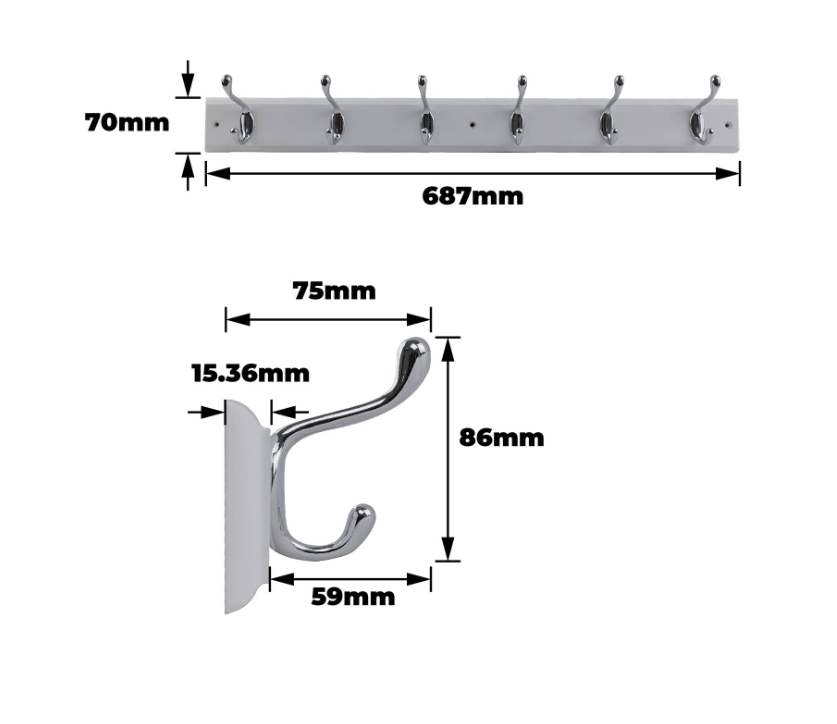 Hookrail - White w/ Chrome HD H&C 6 FSC100% is a practical organisational solution for DIY enthusiasts who require reliable and technically sound products. Manufactured from high-grade metal, this hookrail features a sleek white board paired with six chrome-finished hooks designed to securely hold tools and accessories. Suitable for workshops, garages and retail spaces, it offers precise specifications including an exact weight of 635.4 grams, ensuring both durability and performance in demanding applications.Detailed