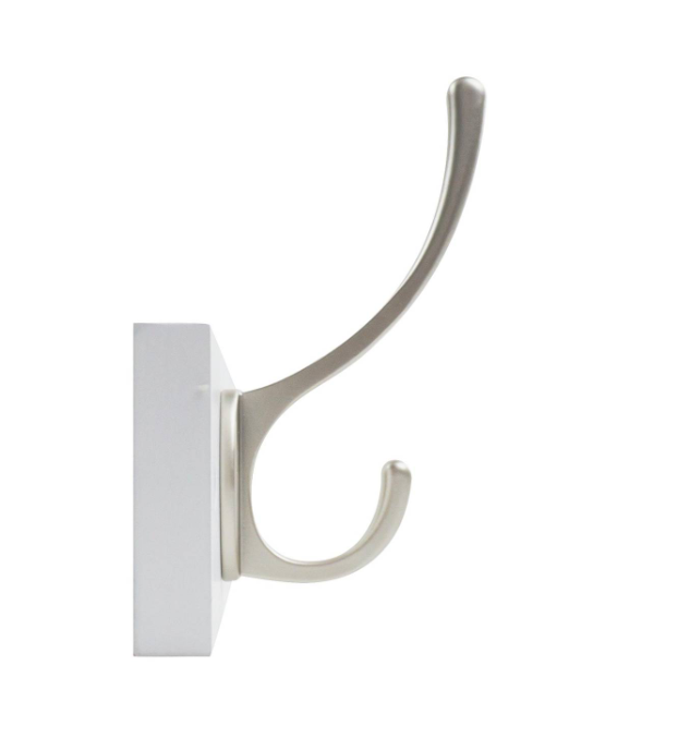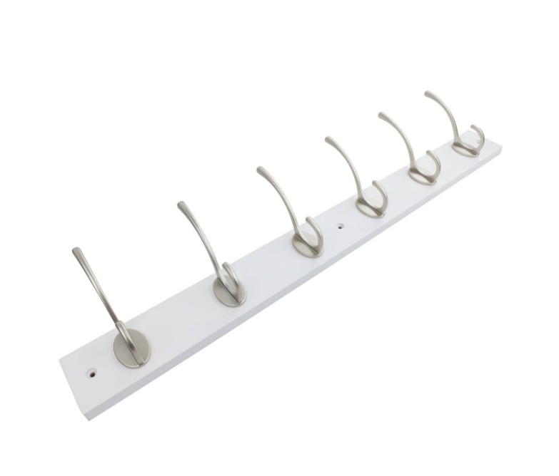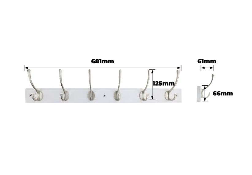 - Features a clean white board with contrasting Nick Vic hooks for a modern touch.