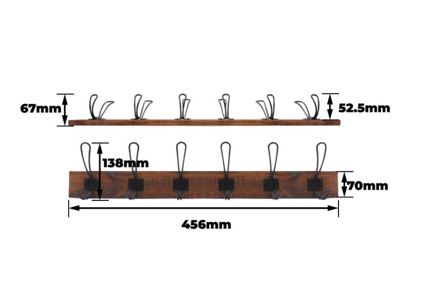 Hookrail Antique with Black Wire H&C 6 FSC100% is a robust wall-mounted solution designed for DIY enthusiasts and builders. Manufactured from medium density fibreboard and steel, this hookrail provides a vintage appearance with its antique-coloured board complementing 12 sturdy black hooks. It is ideal for organising tools and accessories in workshops or home projects, while its adherence to FSC guidelines underscores its commitment to sustainable sourcing and reliable quality.Detailed