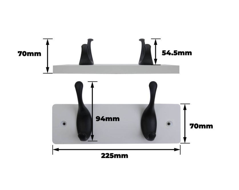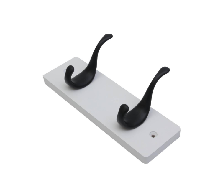 Hookrail - White w/ Black Modern Hook 2 FSC100% is a practical storage solution manufactured from medium density fibreboard and aluminium. Designed for DIY enthusiasts, it offers a robust and stylish method for organising tools, accessories and household items. The white board and sleek black hooks provide a modern aesthetic while ensuring durability and reliability. Easily installed on walls, it is an ideal choice for projects requiring precise technical specifications and quality craftsmanship.Detailed