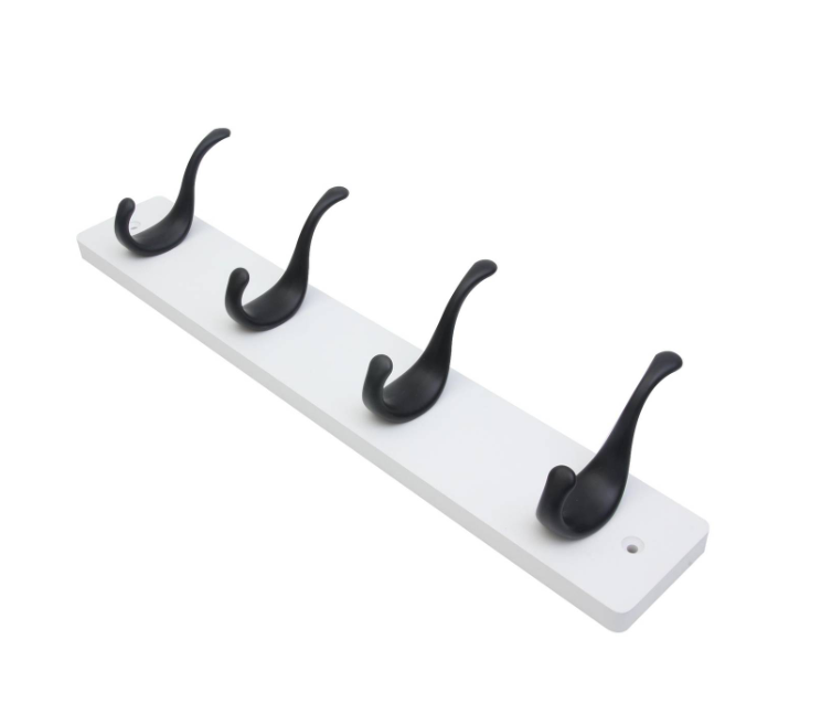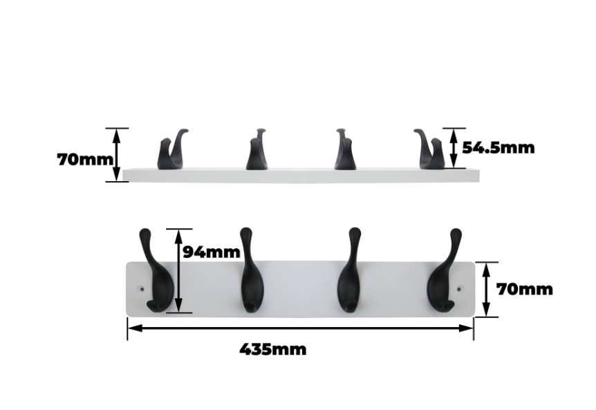 Hookrail - White w/ Black Modern Hook 4 FSC100% is a practical wall-mounted storage solution designed for DIY enthusiasts. Crafted from medium density fibreboard with durable aluminium hooks, this hookrail features a clean and modern design. With eight sturdy hooks on a white board, it is ideal for organising tools, keys and accessories in workshops or home environments. Sustainable and easy to install, it offers both functionality and style for technical, DIY-savvy buyers.Detailed
