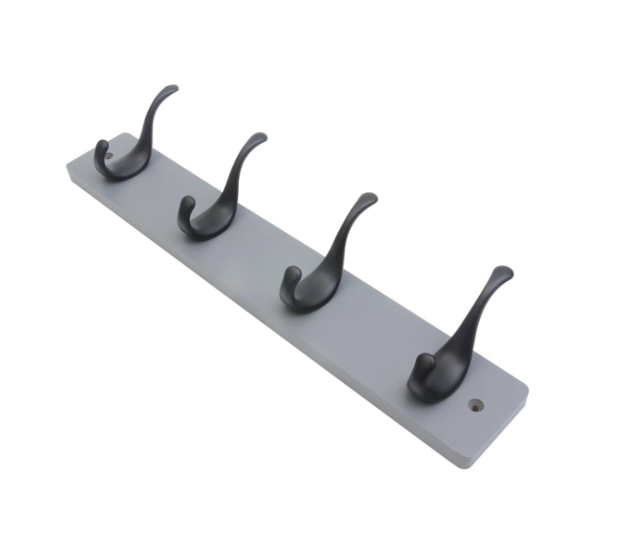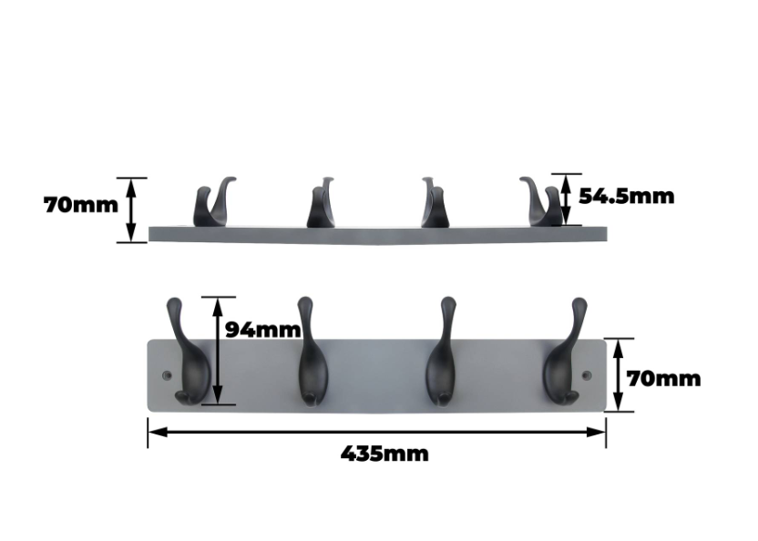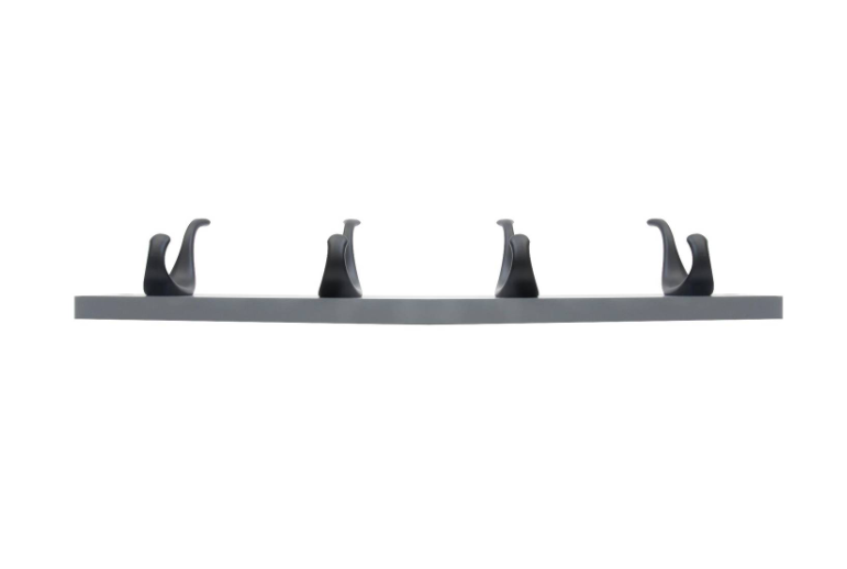 Hookrail - Grey w/ Black Modern H&C 4 FSC100% is a robust wall-mounted hook rail designed for DIY enthusiasts. Crafted from medium density fibreboard and aluminium, this product offers a durable and modern solution for organising spaces. Its eight secure hooks provide an efficient hanging system for tools or accessories, making it both a practical and stylish addition to any home workshop or retail display. The eco-friendly construction ensures sustainability without compromising performance.Detailed