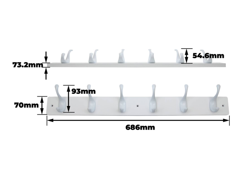 Hookrail – White w/White Modern Hook is a versatile wall-mounted system designed to support a range of DIY projects. Made from white medium density fibreboard paired with aluminium hooks, it offers a robust yet stylish solution for organising tools and accessories. With 12 hooks in a clean monochrome finish, the product provides efficient storage, durability and ease of installation. Ideal for the technically inclined DIY enthusiast seeking practical, reliable enhancements.Detailed