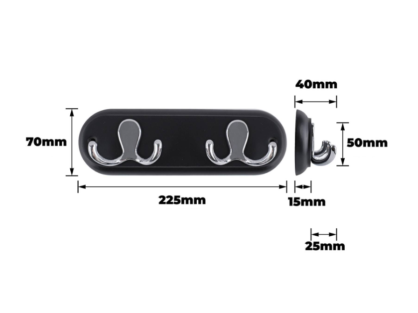 Hookrail Black with Chrome Double Robe 2 FSC100% is a sturdy hardware accessory designed for organising robes and garments in residential and commercial settings. Its contemporary design, combined with sustainable FSC100% compliance, makes it a practical choice for DIY enthusiasts seeking efficient space management. The product’s reliable construction and easy installation offer a cost-effective solution for upgrading wardrobes and utility areas with a modern and functional aesthetic.Detailed