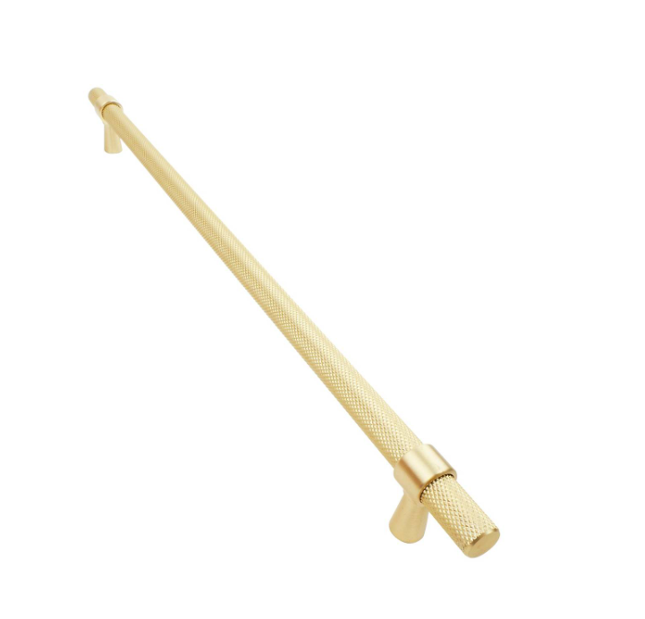 T Bar Handle is a practical and stylish addition to any DIY project. Measuring 320mm and featuring a knurled design in brushed brass, these handles provide a secure grip and an elegant finish to cabinets or furniture. Made from durable aluminium, they offer both aesthetic appeal and functional strength, making them ideal for those who appreciate quality craftsmanship in their home improvements.Detailed