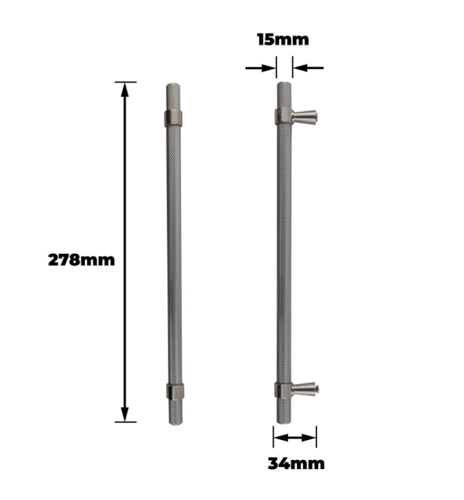 T Bar Handle is a robust and stylish solution for various DIY projects. Measuring 224mm, this knurled satin handle provides a comfortable grip, enhancing control and precision during use. Made from durable aluminium, it's designed to withstand heavy use while adding a contemporary touch to your furniture or cabinetry. This pack includes two handles, making it ideal for completing multiple projects or upgrades.Detailed
