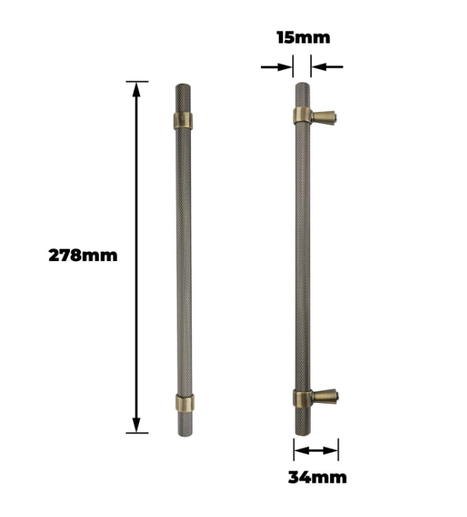 T Bar Handle 224mm Knurled Antique Brass Pk2 is a precisely engineered T-shaped handle made from robust aluminium. Its knurled surface facilitates a secure grip, making it ideal for cabinet doors, drawers and other DIY projects. The antique brass finish not only provides a classic look but also offers longevity in demanding applications. Each pack contains two handles with thoughtful design details, including an integrated colour card for easy specification.Detailed