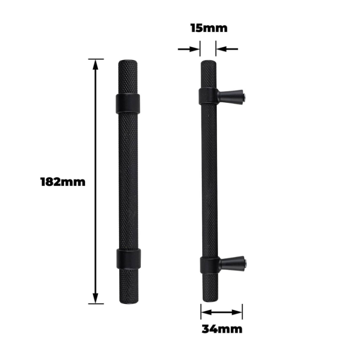 T Bar Handle 128mm Knurled Black Pk2 is a sturdy and versatile T bar handle designed for demanding DIY projects. Crafted from aluminium with a precise knurled finish, it provides a secure and comfortable grip during frequent use. Designed with a T-shaped form, it is ideal for applications requiring ergonomic precision and durability. This product offers a reliable solution for both home and professional redecorators who need practical, long-lasting performance.Detailed