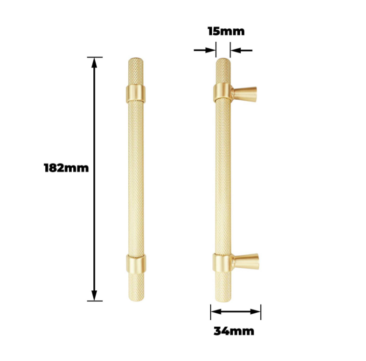 T Bar Handle 128mm Knurled Brushed Brass Pk2 is a robust, T-shaped handle crafted from aluminium and zinc. Its brushed brass finish offers both durability and an attractive appearance, making it a practical choice for DIY enthusiasts. Ideal for custom furniture and cabinetry projects, this handle ensures a secure grip and precise operation. Each unit is delivered with a detailed colour card and sustainable paper packaging for added value in retail and online applications.Detailed
