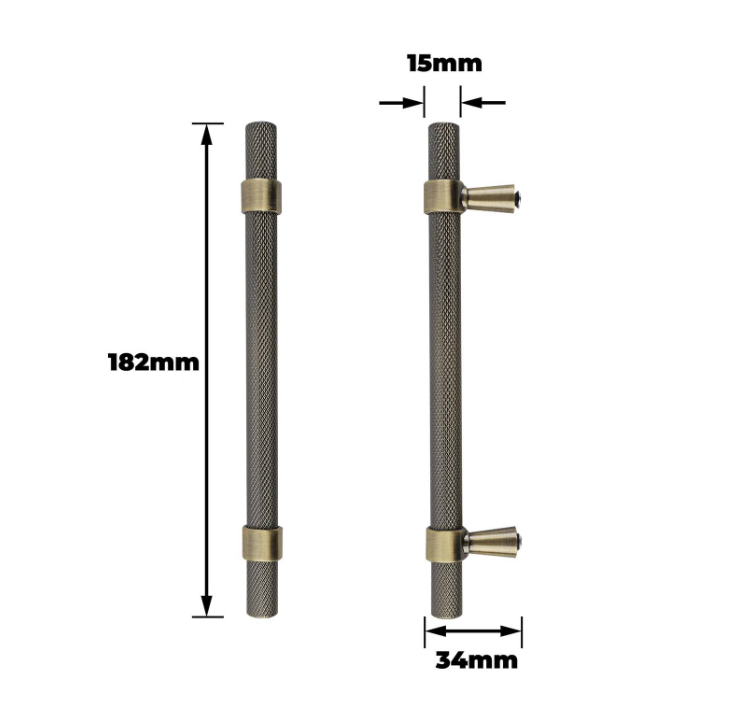 T Bar Handle 128mm Knurled Antique Brass Pk2 is a precision-engineered door handle ideal for DIY applications. This T-shaped handle, made from aluminium and zinc, offers a robust design for secure gripping and durability. Its antique brass finish enhances both contemporary and traditional interiors. Designed for ease of installation and reliable everyday use, it caters to the needs of hands-on enthusiasts seeking technical precision and quality craftsmanship.Detailed