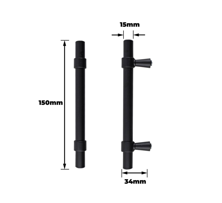 T Bar Handle 96mm Smooth Black Pk2 is a robust, T-shaped handle crafted from aluminium and zinc for precision DIY applications. Ideal for furniture, cabinetry and industrial projects, it offers durability and a sleek black finish for modern appeal. Engineered for versatility in various DIY repairs and installations, this dual-pack ensures you have spare handles for efficient maintenance and upgrades.Detailed