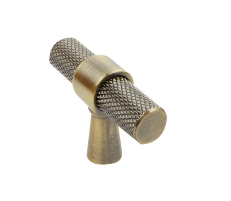 T Handle Knurled Antique Brass Pk2