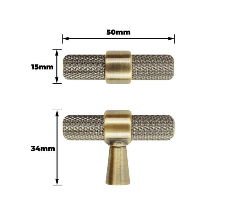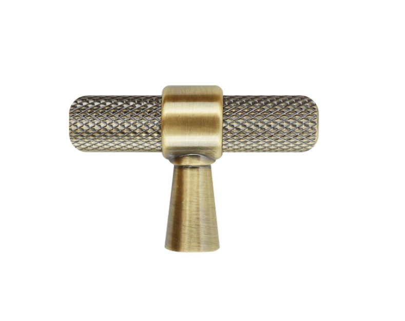 T Handle Knurled Antique Brass Pk2 is a practical metal handle designed with a T-shaped, knurled surface for enhanced grip and ergonomic use. Ideal for DIY enthusiasts and professional users, this handle delivers a vintage yet durable solution for tool applications. Constructed from aluminium and zinc, it features an attractive antique brass finish while maintaining a robust design. Packaged in a two-piece set, it meets the needs of multiple installations and repairs.Detailed