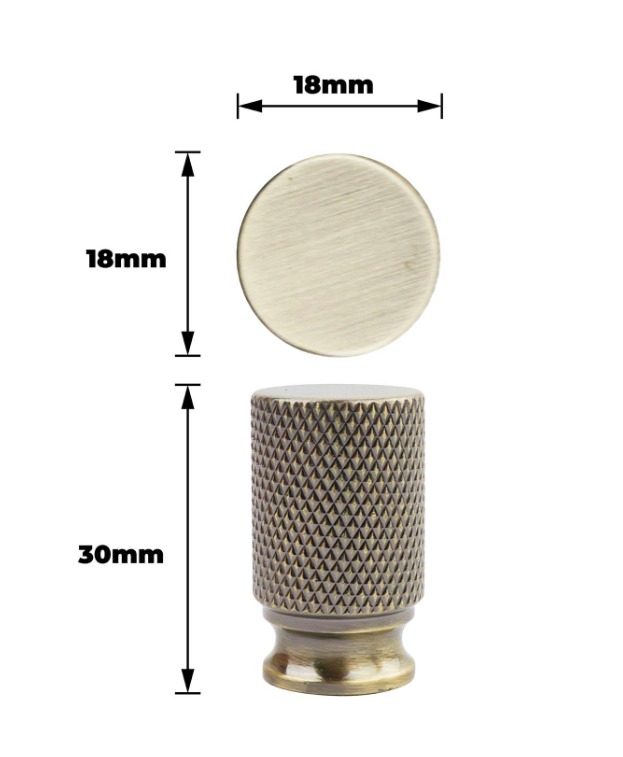 Small Cabinet Knob Knurled Antique Brass Pk2 is a premium door and cabinet knob designed for DIY enthusiasts. This cylinder-shaped knob is crafted from robust aluminium and features an antique brass finish that complements both modern and traditional décor. Its compact design and balanced weight ensure a reliable fit for cabinets or drawers. Offered in a dual-pack, these knobs provide practical, cost-effective solutions for home renovations and custom furniture projects.Detailed
