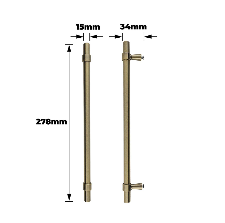T Bar Handle 224mm Smooth Antique Brass Pk2 offers a robust and practical solution for upgrading cabinets, furniture, and doors. Its T-shaped design provides a secure grip while its smooth finish enhances aesthetic appeal. Constructed from durable aluminium and zinc, this handle is ideal for DIY enthusiasts seeking reliable, long-lasting hardware. Packaged as a two-unit set with a clear colour card, it is designed to meet technical standards and practical application needs.Detailed