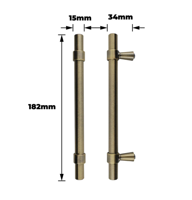 T Bar Handle 128mm Smooth Antique Brass Pk2 is a quality hardware solution for DIY projects, offering durability, precision and a vintage finish. This handle is fabricated from robust aluminium and zinc, making it ideal for cabinets, furniture and other interior upgrades. Its T-shaped design combines practicality with style, providing a secure grip for everyday use. Packaged in a pair with a colour card for easy reference, it meets the needs of retail and online DIY enthusiasts.Detailed