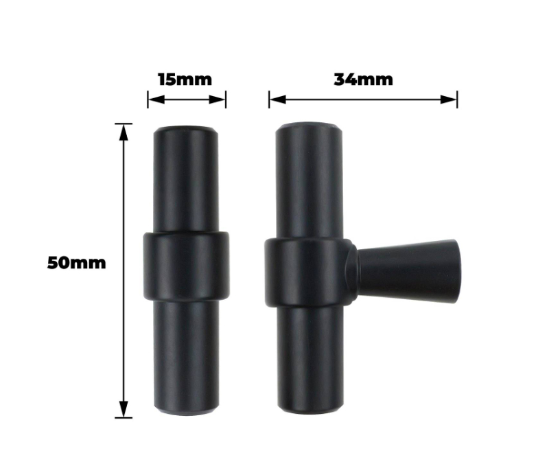 T Handle Smooth Black Pk2 is a practical tool designed for DIY enthusiasts requiring precise and ergonomic performance. Its T-shaped design ensures improved control and ease of use in various maintenance and repair projects. Constructed from aluminium and zinc, it offers durability and reliability while maintaining a lightweight presence at 64 grams each. Ideal for workshops and home improvement, this handle delivers both robustness and practical design, backed by secure paper packaging.Detailed
