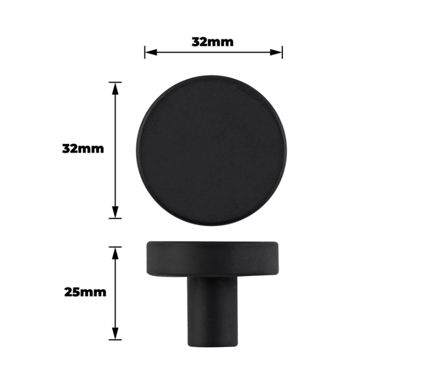 Round Knob Smooth 32mm Black PK2 is a precision-engineered knob crafted from aluminium with a unique, special shape. Its smooth finish and compact 32mm design make it ideal for furniture, cabinetry and door applications, providing both style and durability. Designed for DIY enthusiasts, this component ensures reliable performance and easy installation in practical home improvement projects.Detailed