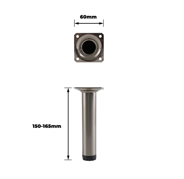 30DIA 150MM STEEL B NICKEL RND is a robust leg engineered for DIY enthusiasts needing reliable support in custom projects. Made from steel with polypropylene reinforcement and finished in brushed nickel, this adjustable leg offers precision and durability. Its integrated plate ensures secure installation for a variety of structural and design applications, making it an ideal component for workshop builds and home improvements that require technical accuracy and performance.Detailed