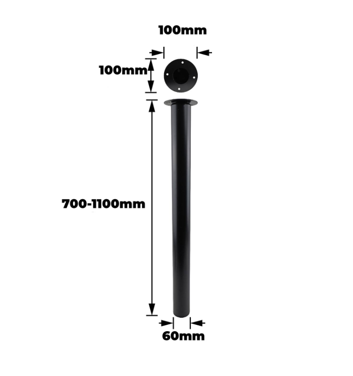 EXT LEG 50X700/1100MM BLACK is a robust extension leg designed for precise DIY projects requiring reliable support. Crafted from steel and polypropylene, this adjustable leg features a firm plate base that facilitates quick and secure installation. Its technical specifications ensure stability and durability, making it an ideal choice for experienced DIY enthusiasts and professionals alike. The leg’s cylinder shape and classic black finish further enhance its practicality in various construction and repair tasks.Detailed