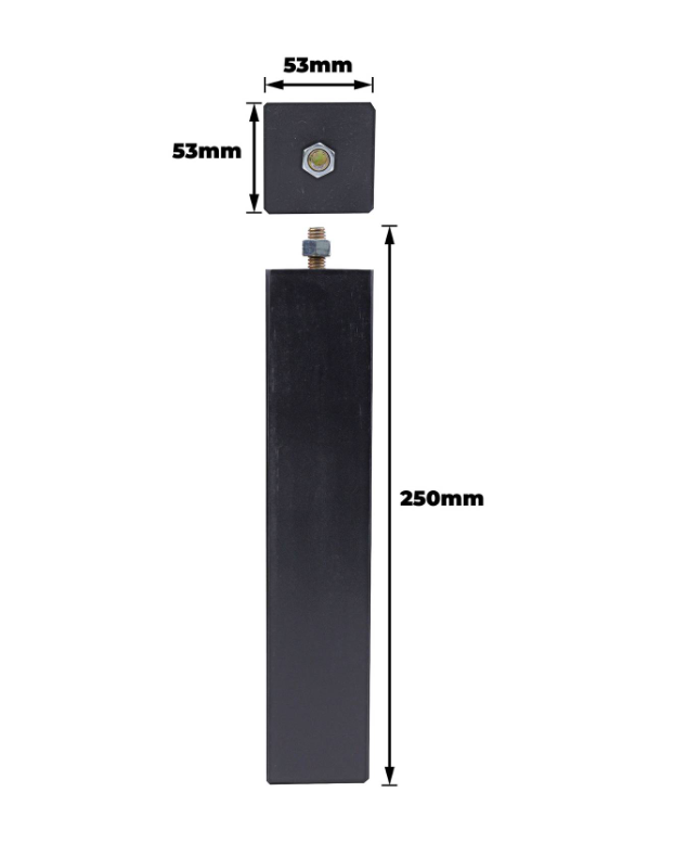 53MM(LXW)X250MM(H) SQUARE BLACK PINE LEG 1PK is a sturdy support solution designed for DIY enthusiasts. Crafted from quality black pine timber with an integrated steel bolt, this leg provides reliable stability for furniture assembly and restoration projects. Its precise square dimensions ensure an effective load distribution while offering ease of installation. Ideal for construction and repair tasks, it delivers practical performance without unnecessary complexity.Detailed