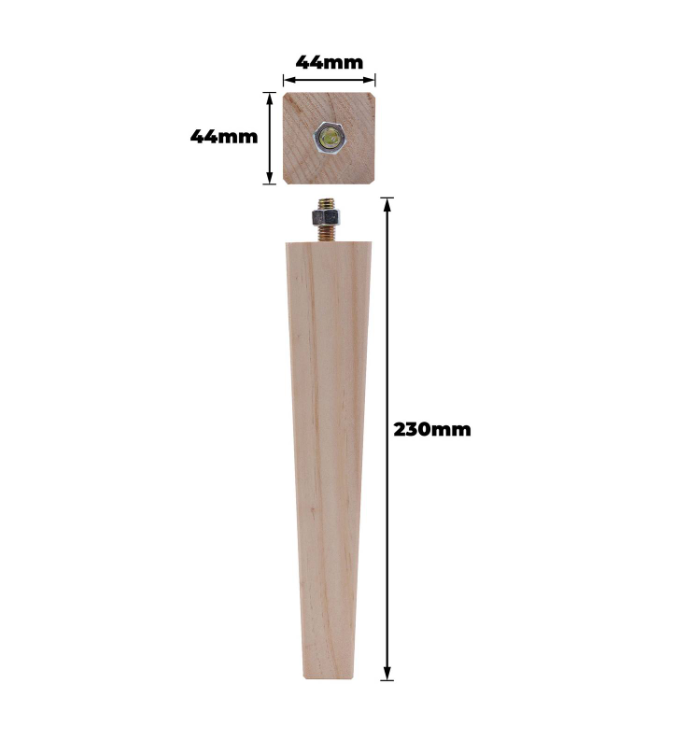 This robust fastener, crafted from pine with a natural burlywood finish, is engineered for precise woodworking and joinery applications. Its 230mm length and square tapered design provide a secure, stable fit, making it a practical choice for DIY enthusiasts. With the integration of bolt fastening, this component delivers enhanced structural integrity and ease of installation for various construction and repair projects.Detailed