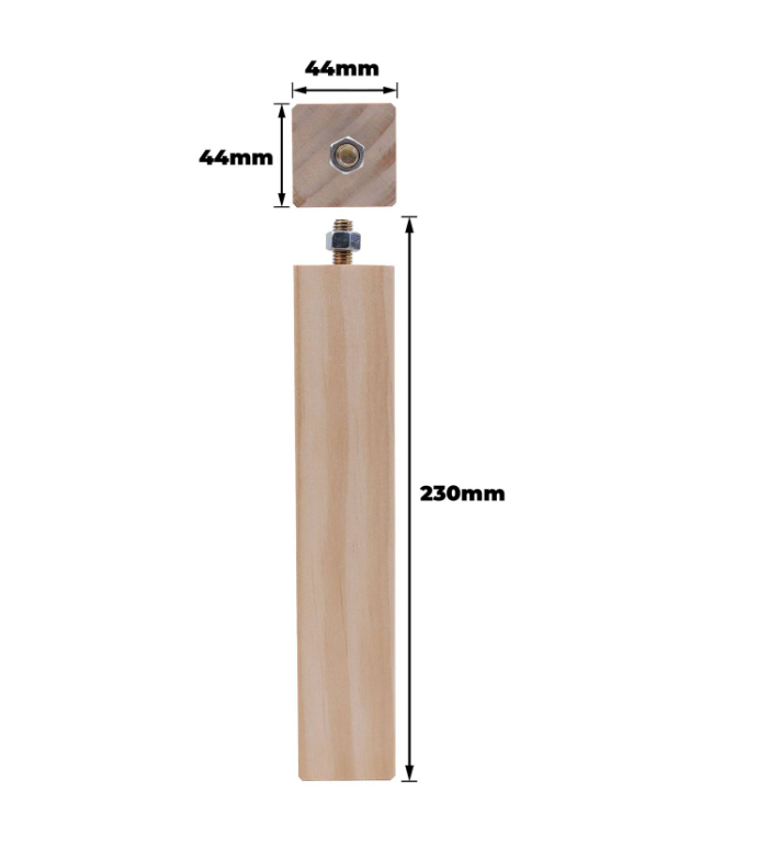 230MM SQUARE PLAIN PINE FURNIT is a robust pine leg designed for supporting furniture and DIY projects. Crafted from natural pine with a Burlywood finish, it provides reliable stability and ease of installation. Weighing 226 grams, this square-shaped support element incorporates a bolt for secure attachment. Ideal for retail and online buyers with technical know-how, it offers clear specifications and practical utility for a variety of home improvement tasks.Detailed