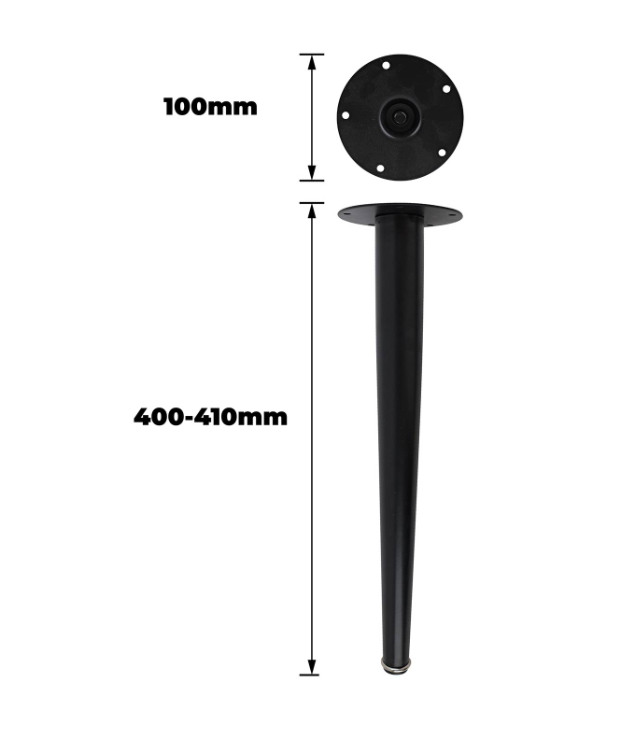 This adjustable metal leg features a tapered profile and is engineered for robust furniture support. Constructed from steel paired with polypropylene, it delivers durability and strength that DIY enthusiasts value. Its built-in mounting plate ensures secure and precise attachment, while the sleek black finish complements both modern and traditional aesthetics. Ideal for projects requiring reliable technical specifications and practical design for furniture refurbishment and custom builds.Detailed