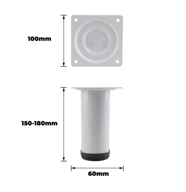 60X150MM ADJUSTABLE ROUND FURNITURE LEG WHITE