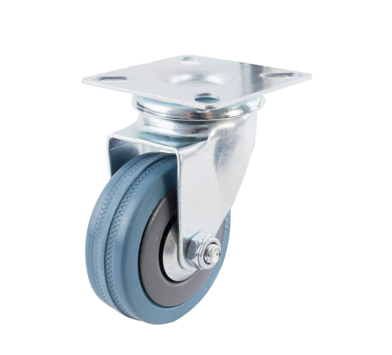 Castor Blue/Grey Rubber Swiv/Plate 50mm