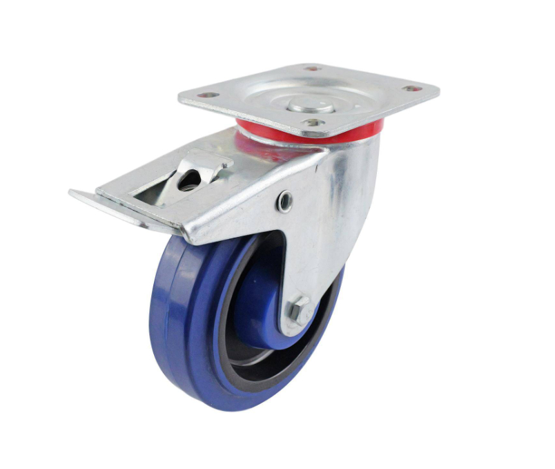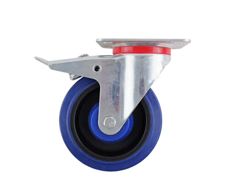 Castor Blue Elast Rub. Swiv/Plate Brake 125mm