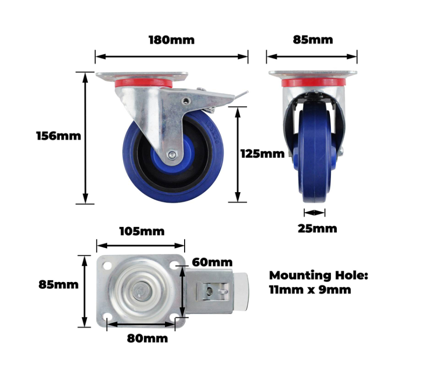- 125mm brake mechanism enhances stability, ensuring secure stops in dynamic environments.