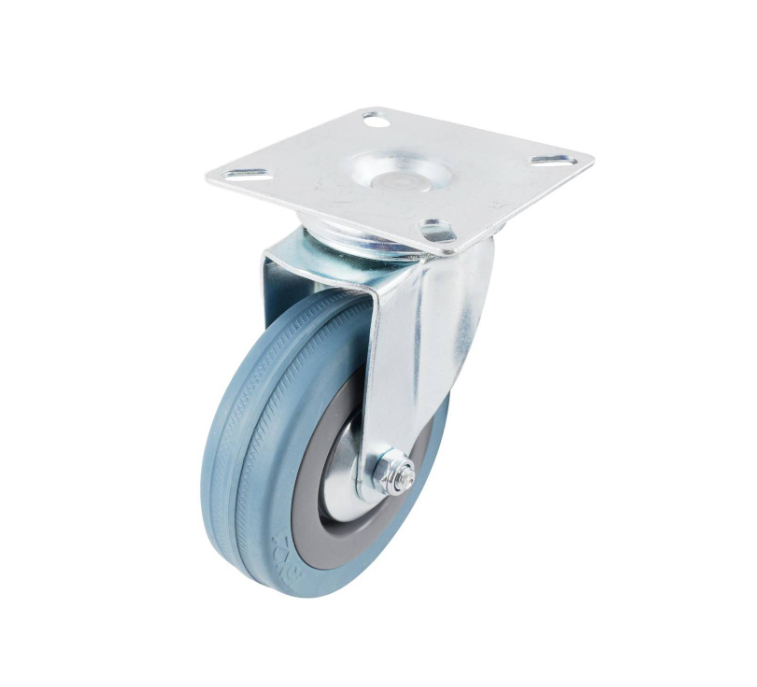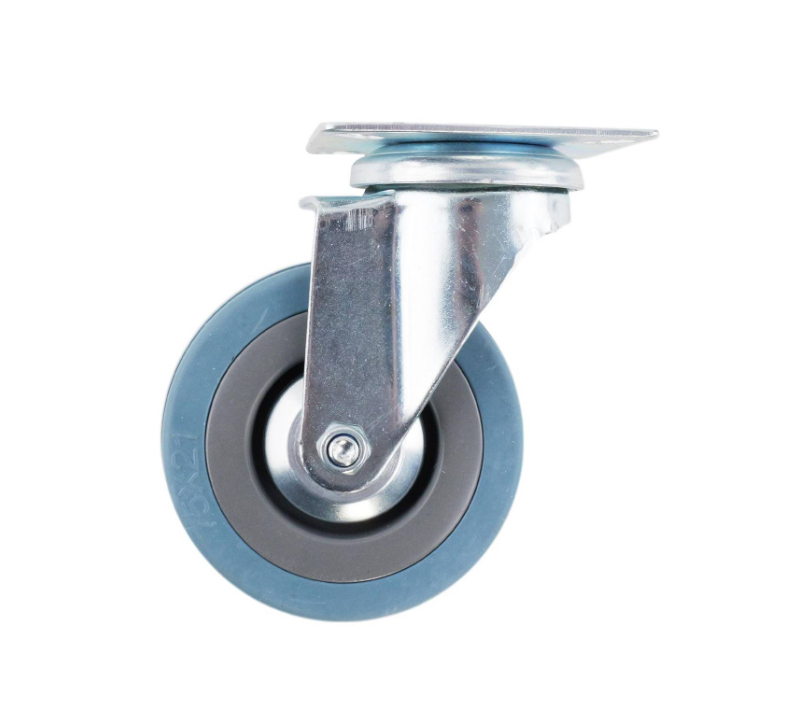 Castor Blue/Grey Rubber Swiv/Plate 75mm