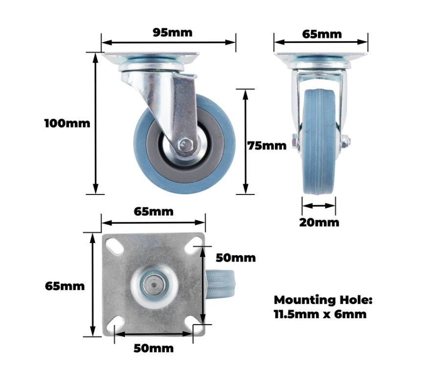 Castor Blue/Grey Rubber Swiv/Plate 75mm is a robust castor designed for DIY projects requiring reliable manoeuvrability and strength. Constructed with a steel housing and plain bearing system, it offers a stable load capacity of 45 kgs with a single raceway design for smooth rotation. The combination of polypropylene wheel core and rubber tyre enhances durability, making it ideal for retrofitting furniture and equipment in both home and workshop settings.Detailed