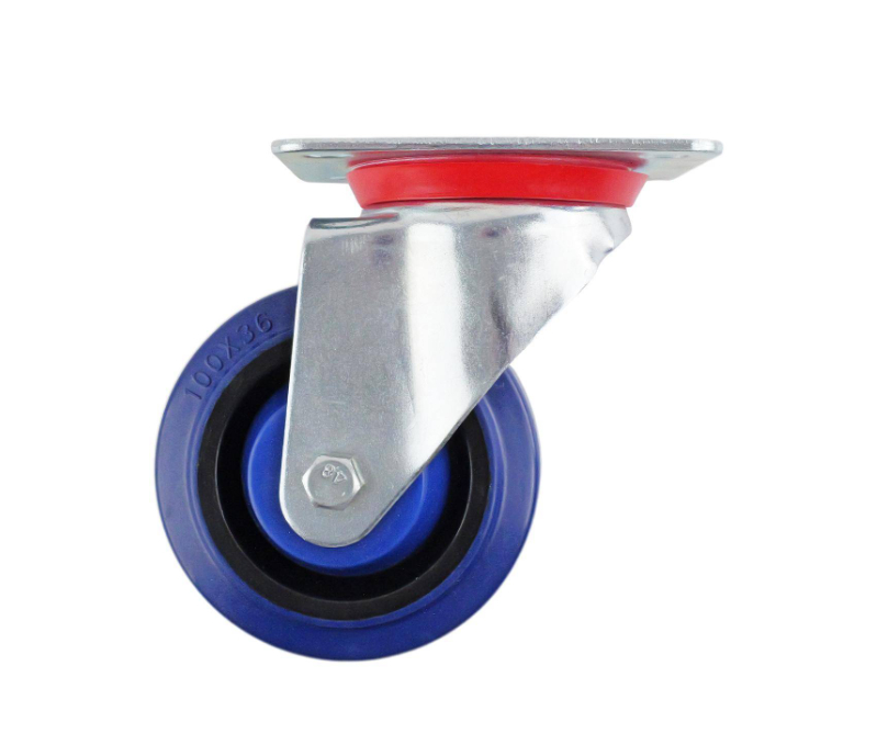Castor Blue Elast Rub. Swiv/Plate 100mm