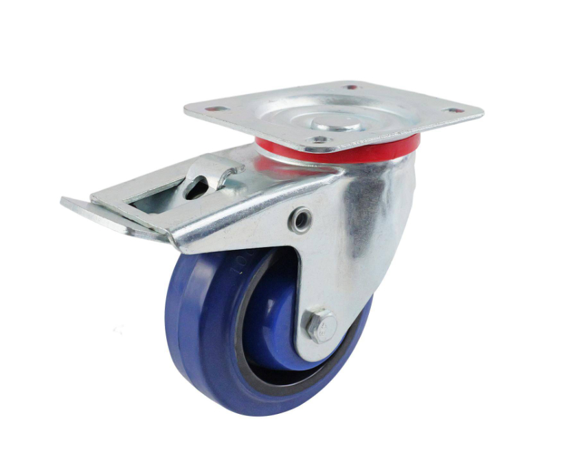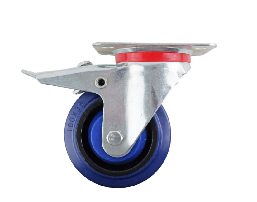 Castor Blue Elast Rub. Swiv/Plate Brake 100mm