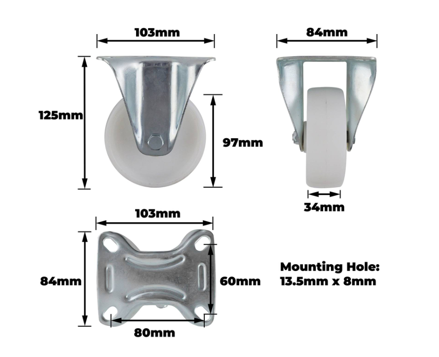 Castor White Polypropylene Fixed Plate 100mm