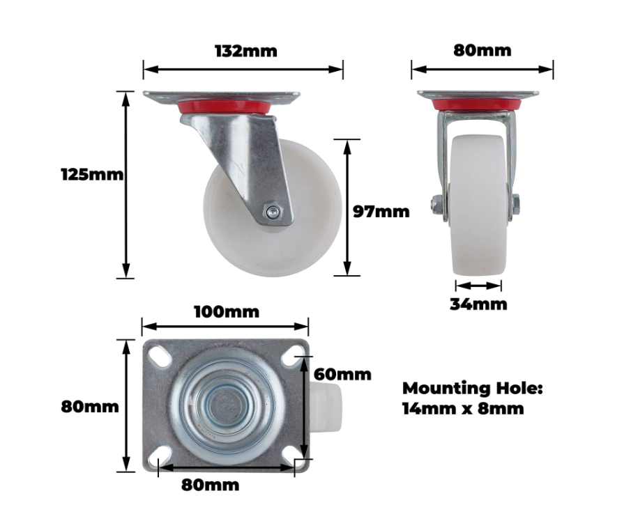 Castor White Polypropylene Swiv/Plate 100mm
