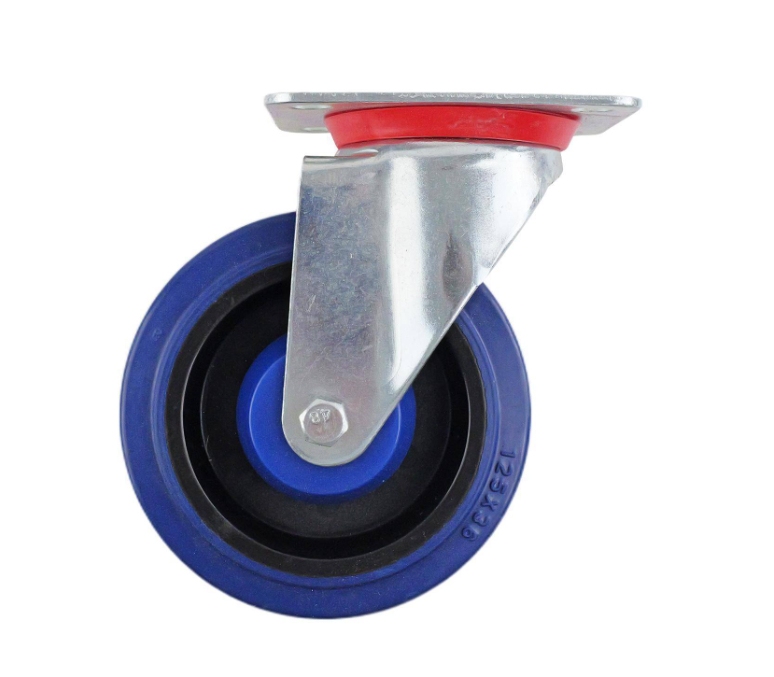 Castor Blue Elast Rub. Swiv/Plate 125mm