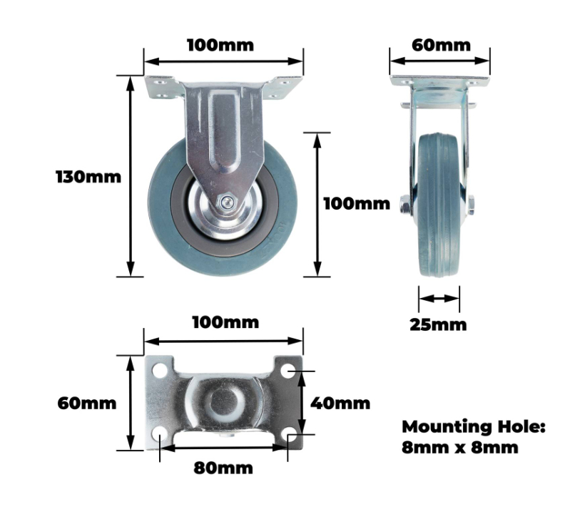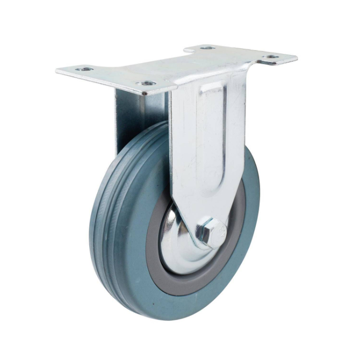 Castor Blue/Grey Rubber Fixed Plate 100mm
