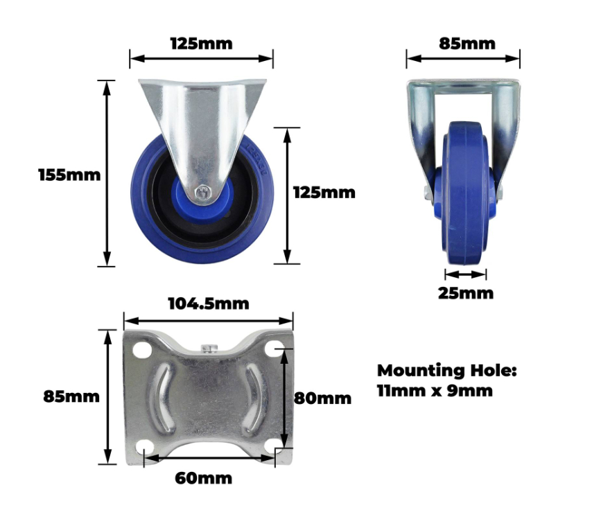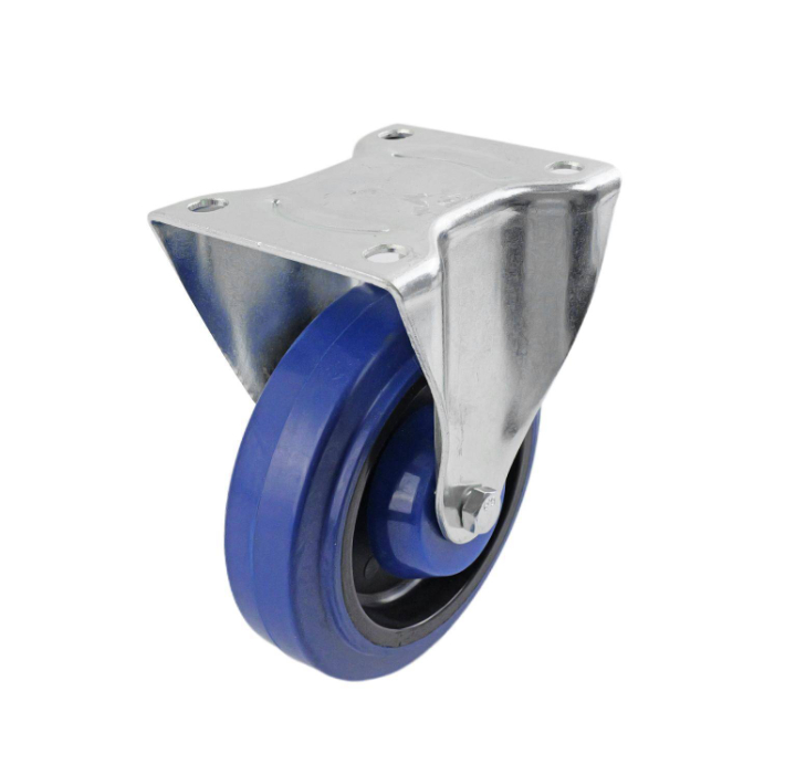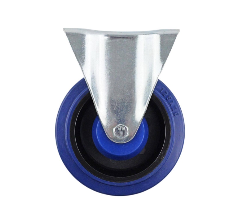 Castor Blue Elast Rub. Fixed Plate 125mm