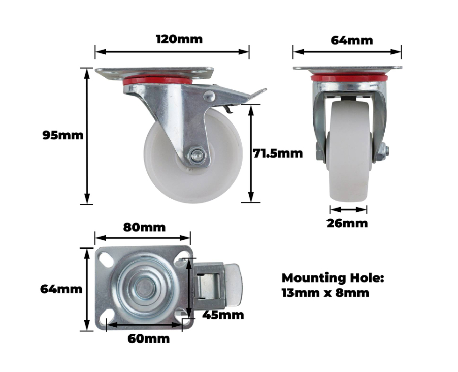 - Robust steel housing and brake system provide secure locking for enhanced stability.