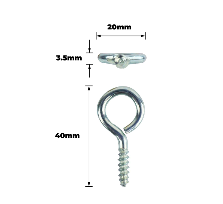 Screw Eyes 40mm Zinc Plated PK6 are precision-engineered screw eyes designed for secure anchoring solutions in a variety of DIY projects. They offer reliable fixing points for hanging items, securing cables, or supporting structures. Crafted from high-grade steel with a zinc-plated finish, these components deliver durability and corrosion resistance, making them valuable for technical tasks and practical applications on workshop or construction sites.Detailed