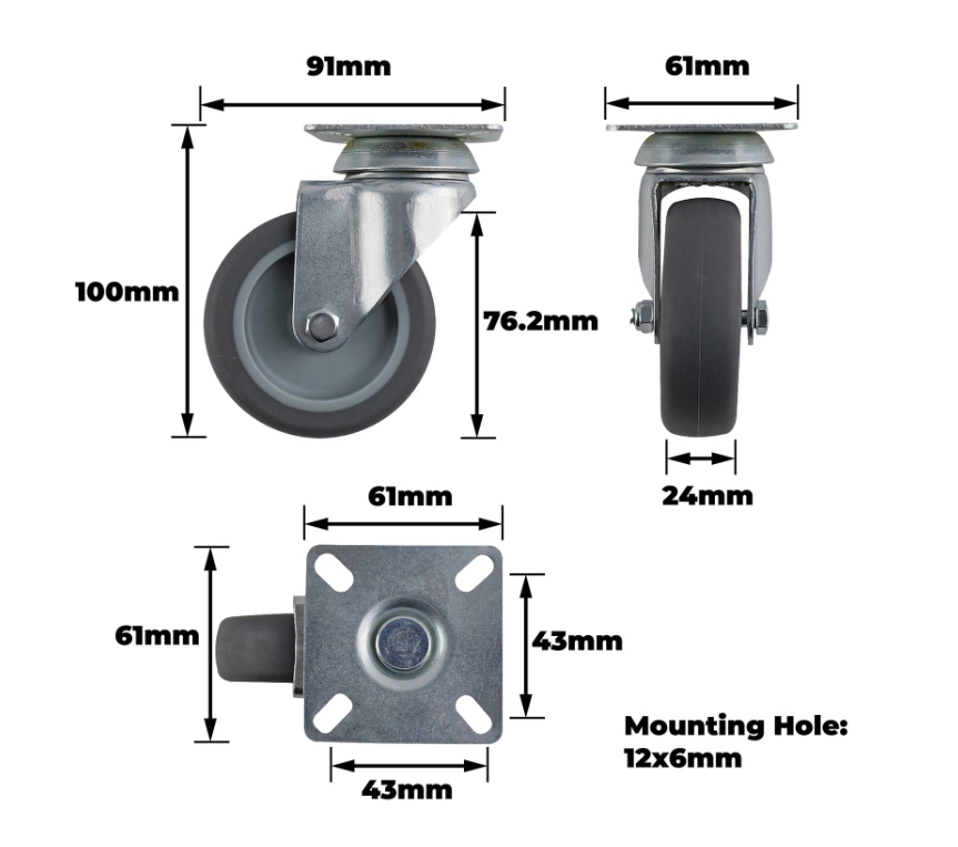 CASTOR SWIVEL PLATE D75 60KG - TPR & CORE Polypropylene