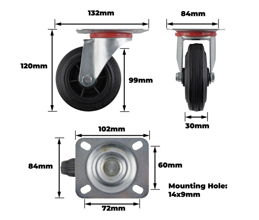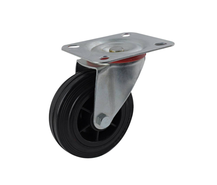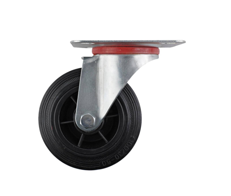 CASTOR SWIVEL PLATE D100 80KG - REINFORCED BLACK RUBBER & PLASTIC CORE