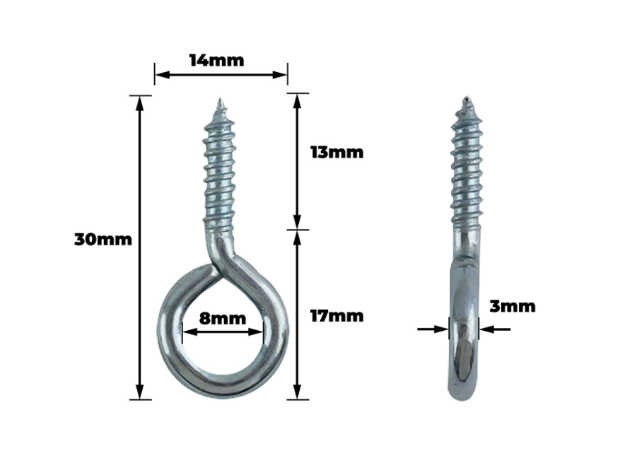 Screw Eyes 30mm Zinc Plated PK8