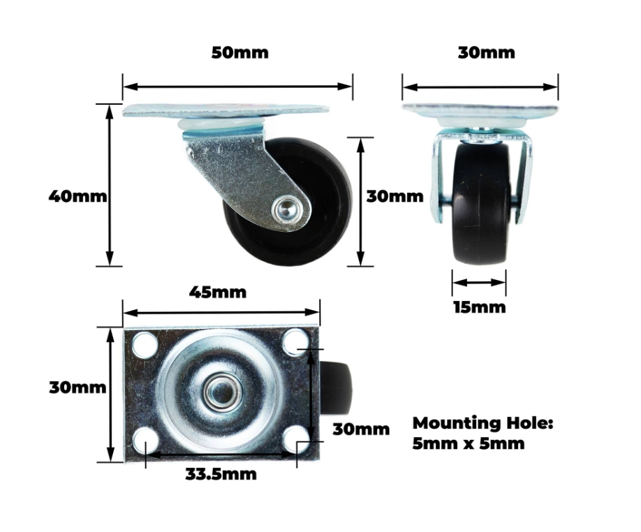 Castor Swivel Plate 32mm Black Polypropylene PK4