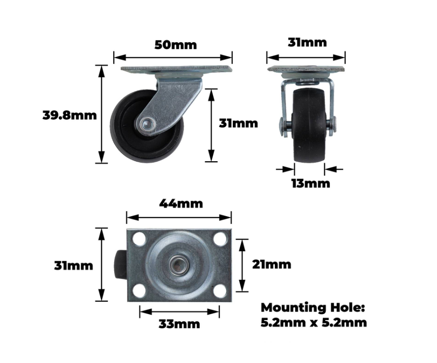 Castor Swivel Plate 32mm Black PK2 is engineered for accurate, DIY-friendly mobility applications. Crafted for small repairs and custom projects, this castor plate features a steel housing with plain bearings that ensure steady rotation. Its polypropylene wheel core and tyre offer a balance of light weight and durability, making it ideal for users needing precise technical specifications. The product’s design focuses on practical use and reliable performance in both retail and online DIY settings.Detailed