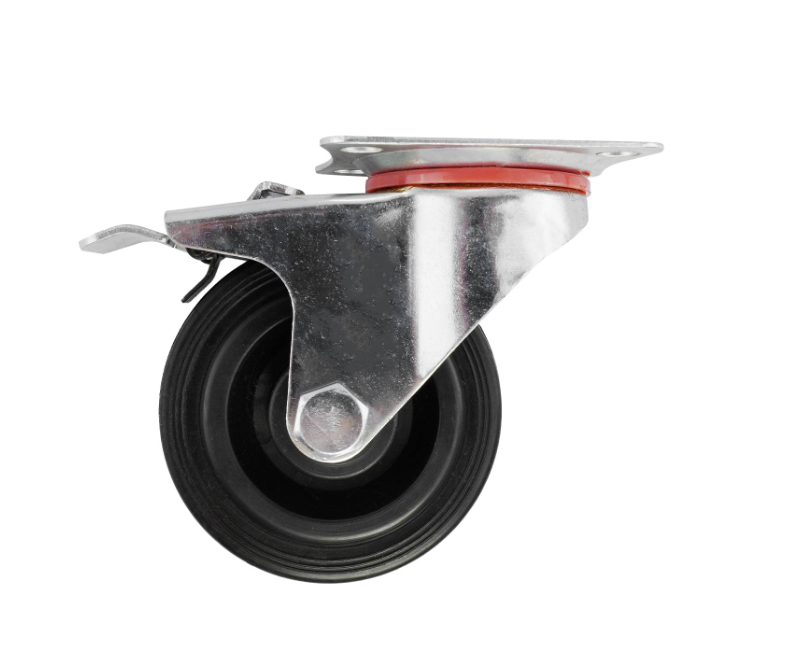 Castor S/E Black Rubber Swiv/Plate Brake 75mm 60kg